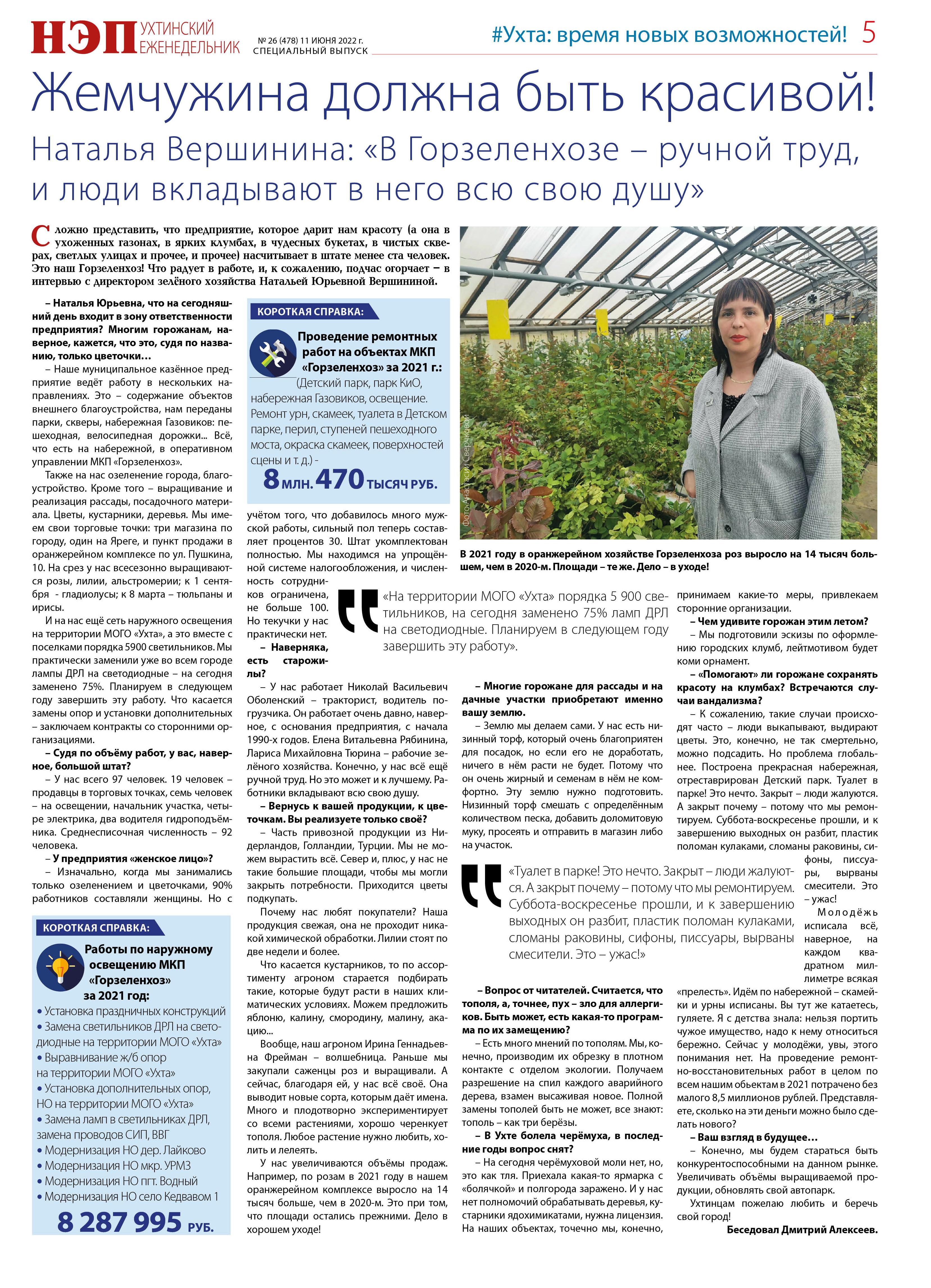 Наталья Вершинина: «В Горзеленхозе – ручной труд, и люди вкладывают в него всю свою душу»